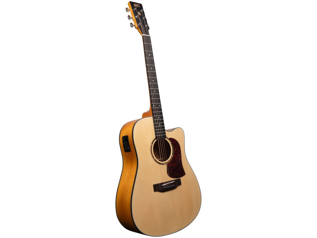 A Henry's Bonefire B102E akusztikus-elektromos gitár egy sokoldalú hangszer, amelyet azoknak a zenészeknek terveztek, akik gazdag akusztikus hangzást és kényelmes erősítést keresnek. Klasszikus dreadnought testformája és cutaway kialakítása megkönnyíti a magasabb hangok elérését, így sokféle játékstílushoz alkalmazkodik. A rétegelt fenyőfa tető világos és tiszta hangzást biztosít, míg a vörös cseresznye háttér és oldalak melegséget és mélységet adnak a hangzásnak. A nato nyak és a fekete richlite fogólap sima játékélményt biztosít, amelyet a gitár természetes esztétikáját hangsúlyozó matt felület egészít ki. A 9 V-os elemmel működő aktív pickup rendszerrel felszerelt Bonefire B102E zökkenőmentes erősítést biztosít, így ideális mind intim akusztikus környezetben, mind nagyobb, erősített fellépéseken. Könnyű szerkezete miatt tökéletes kültéri összejövetelekhez, tábortűz melletti zenéléshez vagy baráti körben való alkalmi játékhoz.