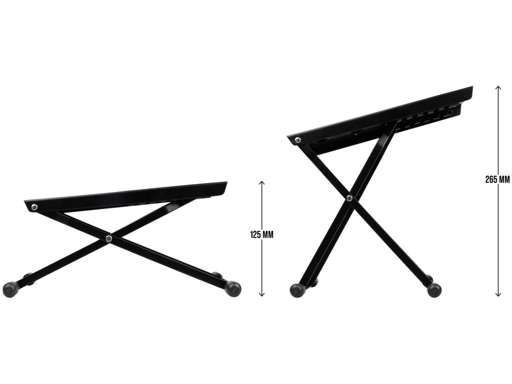 Opierka na nohy sa môže poškodiť pádom alebo nárazom => Odporúčanie: Umístite opierku na nohy na stabilné a bezpečné miesto. Zranenie – Pri skladaní alebo rozkladaní môže dôjsť k zraneniu => Odporúčanie: Pri manipulácii s opierkou nôh buďte opatrní. Nestabilita – Nesprávne umiestnenie môže spôsobiť nestabilitu a komplikácie pre gitaristov => Odporúčanie: Pred použitím sa uistite, že je opierka nôh správne umiestnená a stabilná.